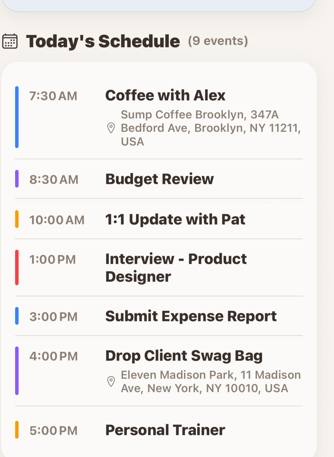 Calendar EventsWe access your device's calendar to display your daily schedule